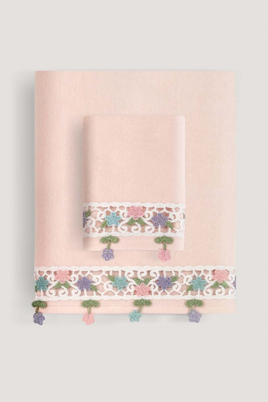 ALYA KADIFE NAKISLI ÇEYIZ HAVLUSU PUDRA 30X50